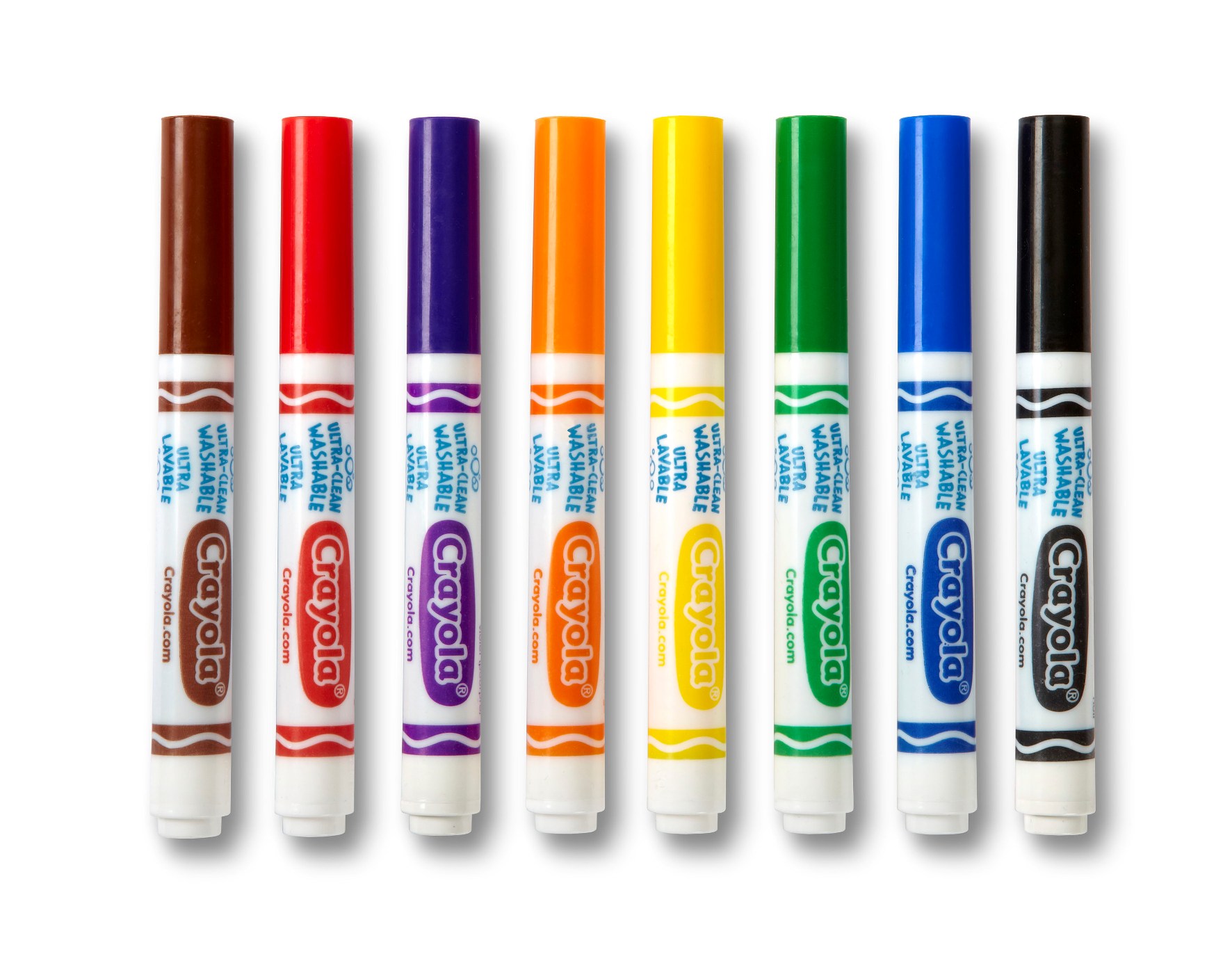 Crayolan huopakynien kirkkaat sävyt on helposti pestävissä pois. Huopakynien leveä kärki sopii erinomaisesti isojen alojen värittämiseen sekä piirtämiseen ja askarteluun.