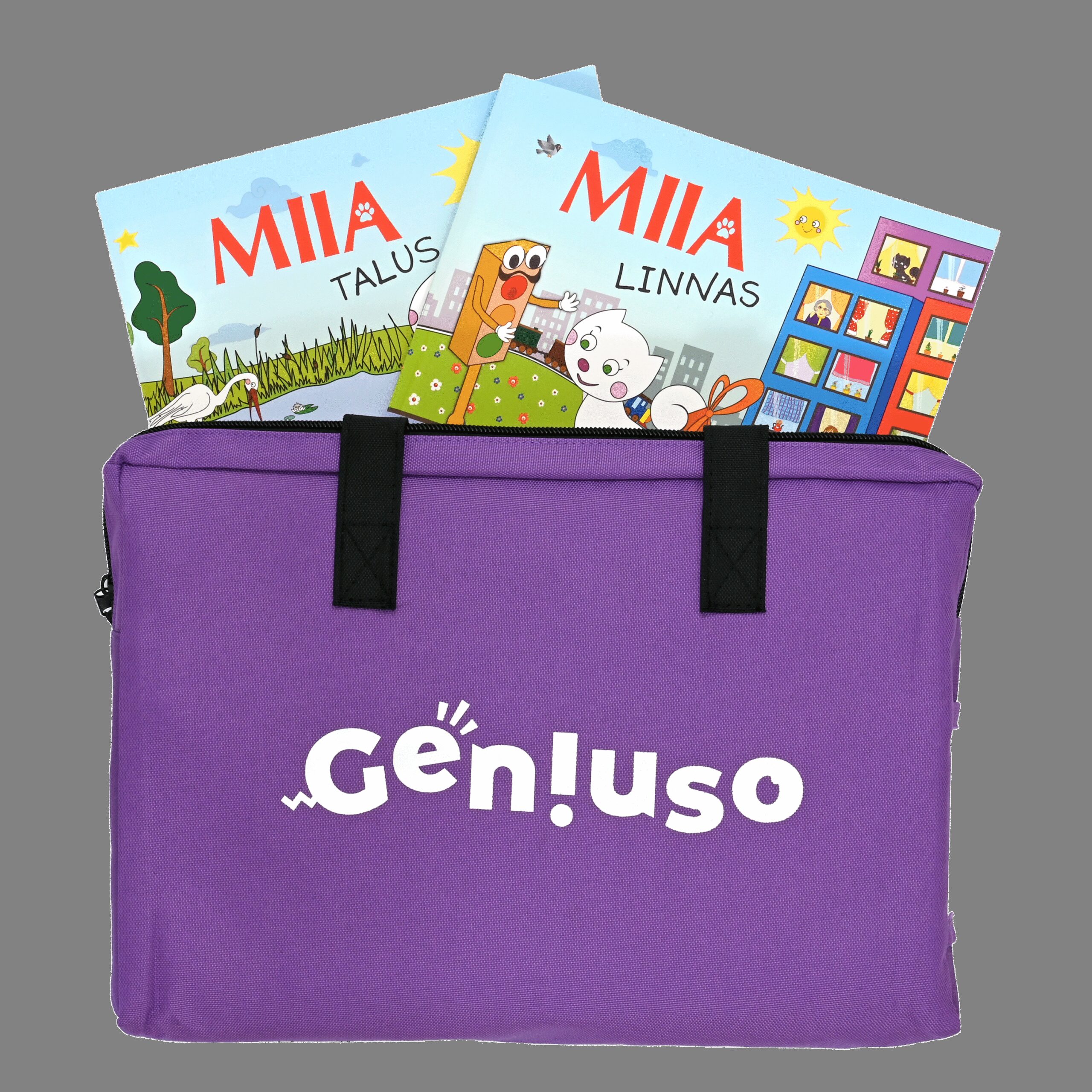 Geniuso MIIA rääkivad raamatud "Talus", "Linnas" ja kandekott määrä