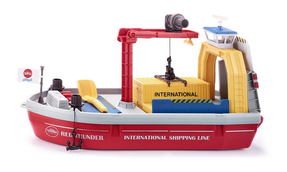 laajentaa sataman leikkimaailmaa. Valtameren jättiläiset ylittävät maailman valtameret ja kuljettavat rahdin turvallisesti SIKUWORLDin määränpääsatamaan. Kelluva konttilaiva kiinnitetään satamassa laiturin, käyttäen kahta mekaanista ankkurivinssiä. Kuten valtavat prototyypit, aluksen ruumassa olevat kaksi bunkkeria voidaan lastata irtotavaralla (rakeella tai hiekalla) tai kahdella kontilla. Mutta lisäksi henkilöautoja ja kuorma -autoja voidaan kuljettaa konttilaivan kannella. Tätä varten ajoneuvot voivat päästä kahteen bunkkeriin laivan  perässä. Kontteja voidaan siirtää ylös- tai alaspäin pyörivällä nosturilla ja siirrettävällä vaunulla, jossa on erityinen kahva. Mukana toimitettua lapioa voidaan käyttää purkamiseen.